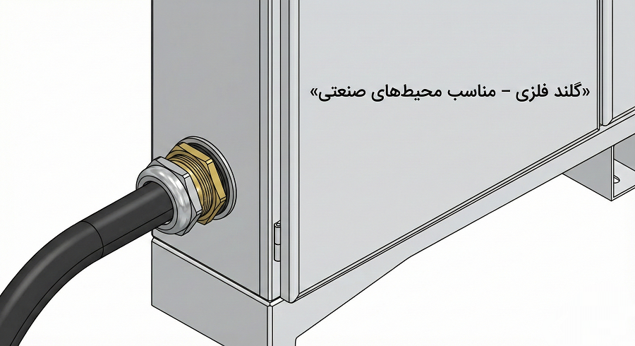 در پروژههایی با ارتعاش، دما یا رطوبت بالا، محیطهای صنعتی، فضای باز یا جاهایی که اتصال ارت و حفاظت EMI نیاز است، استفاده از گلند فلزی توصیه میشود.